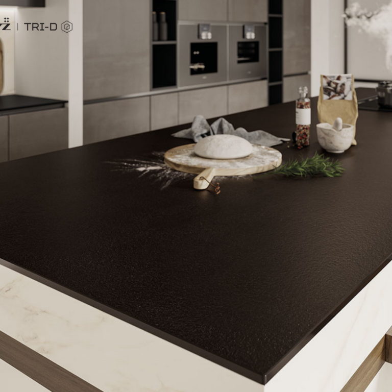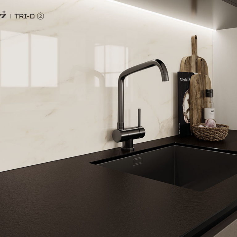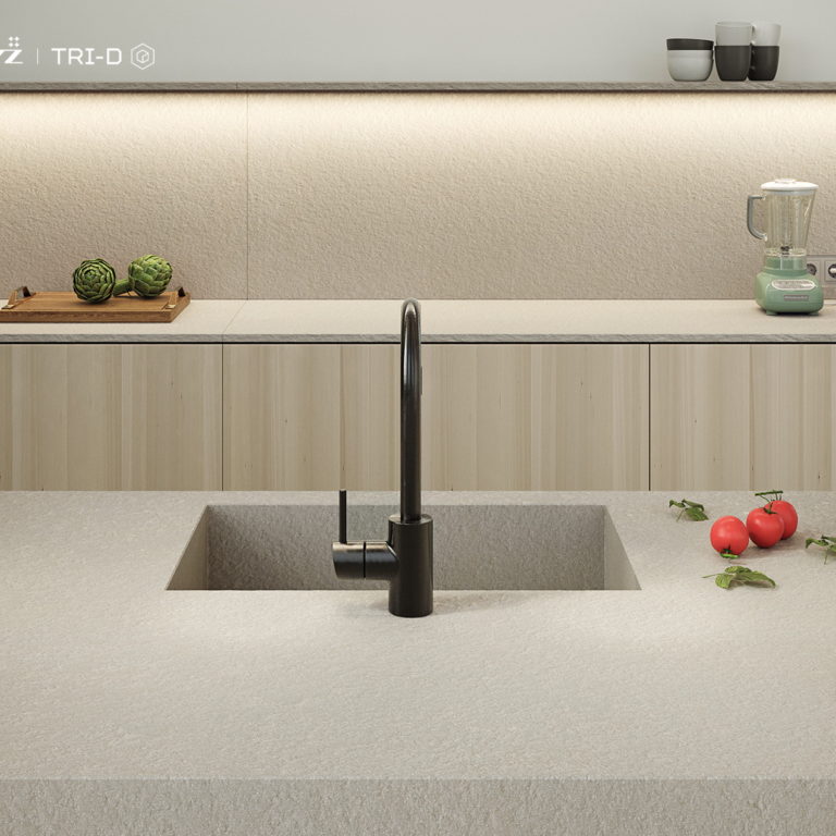 Ceramika Paradyż jako pierwszy polski producent, a jeden z nielicznych na świecie, oferuje spieki kwarcowe barwione w masie z efektem „żyły” przechodzącej na wskroś płyty. Spieki TRI-D marki PARADYŻ to innowacyjny produkt, który sprawdzi się jako blaty kuchenne i łazienkowe, parapety, wyspy kuchenne, okładziny mebli i kominków, a także materiał do wykonania zlewów. Doskonałe właściwości techniczne sprawiają, że spieki mogą być wykorzystane również na zewnątrz na elewacji lub do stworzenia obiektów małej architektury. Kolekcje Ceramiki Paradyż są spójne wzorniczo, dzięki czemu przestrzenie powstałe z różnych linii produktowych wspaniale współgrają ze sobą tworząc piękne i ponadczasowe kompozycje.